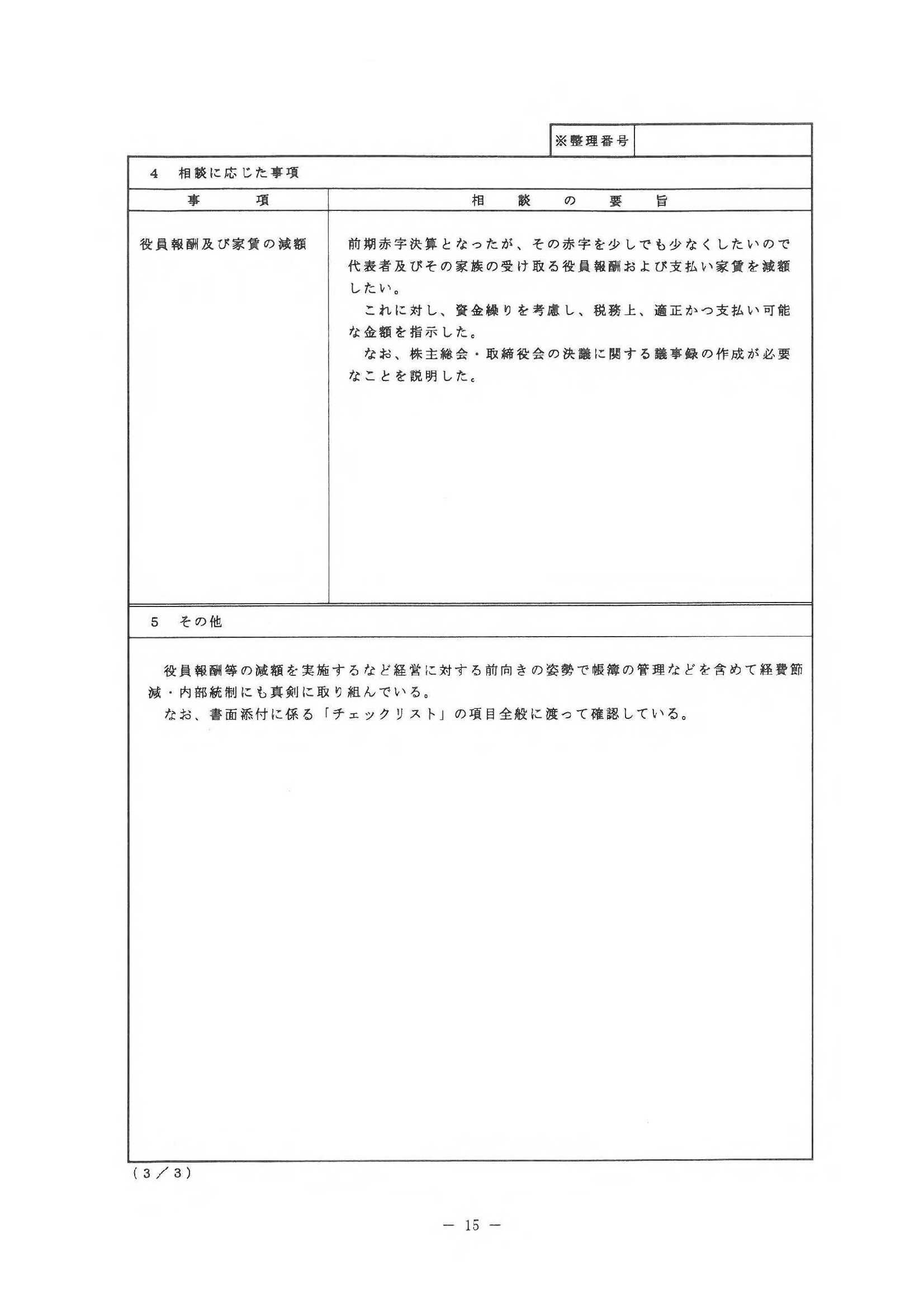 この「書面添付制度」を継続して適用していくために、皆様に、厳しいご指導をさせていただく場合もあるかと思います。皆様に、この制度のメリットを活用していただきたいという想いを持ってのことですので、ご理解とご協力をお願いします。